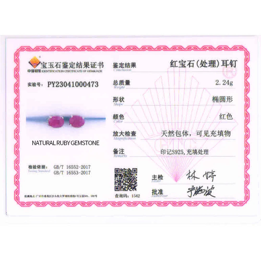 Natural Ruby oval 6*8mm gemstone simple & classic design earring 925 sterling silver jewelry for girls & lady gift